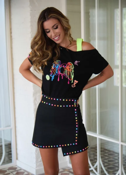 CAMALEONICA FALDA MUJER FALDA AZUFRE NEU NEGRO